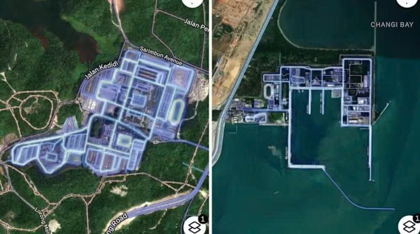 Các căn cứ quân sự của Singapore có thể được nhìn thấy trên bản đồ nhiệt toàn cầu của Strava, như Trại Sungei Gedong (bên trái) và Căn cứ Hải quân Changi (bên phải). (Ảnh: channelnewsasia)