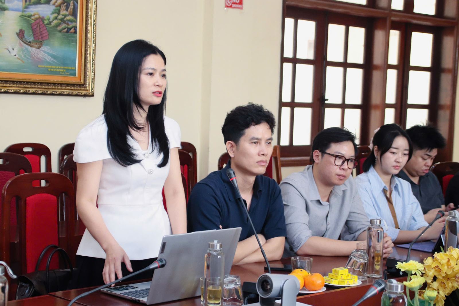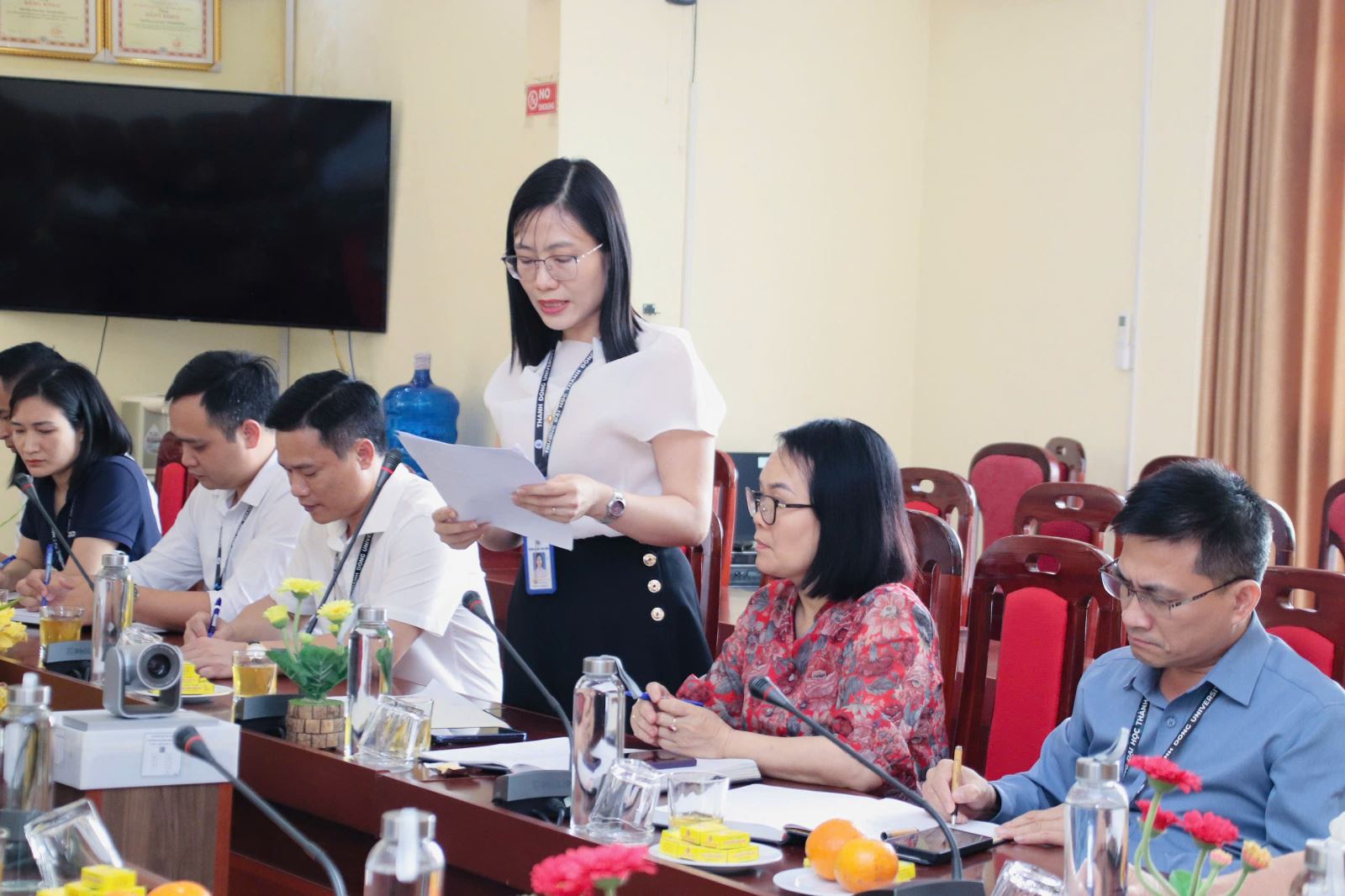 TS. Đặng Thị Lan Anh - Phó Trưởng phòng Quản lý Khoa học - Trưởng Đại học Thành Đông báo cáo tại hội nghị