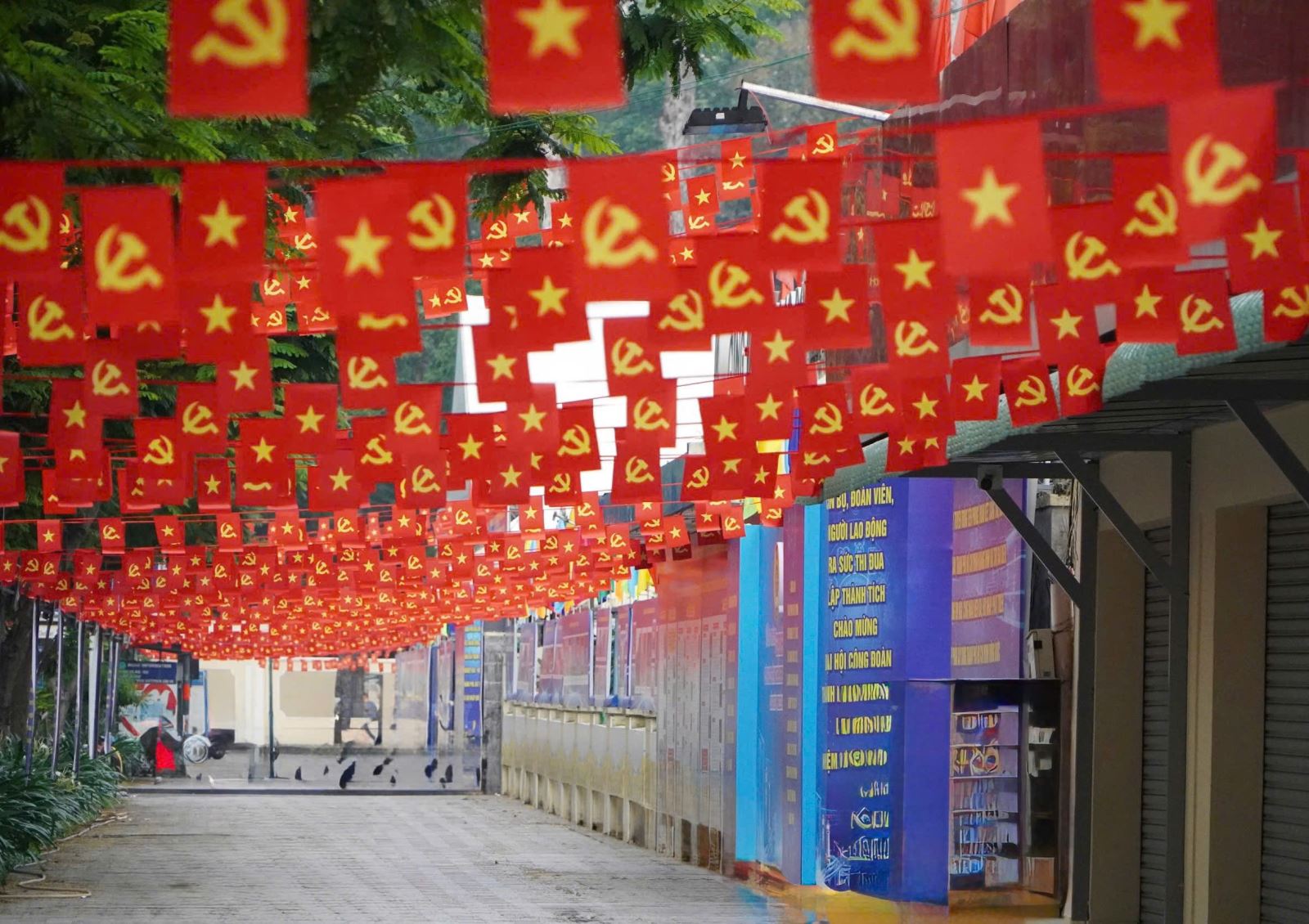 Đường phố TP Hồ Chí Minh rực rỡ sắc đỏ cờ hoa chào mừng Đại hội XIV của Đảng.