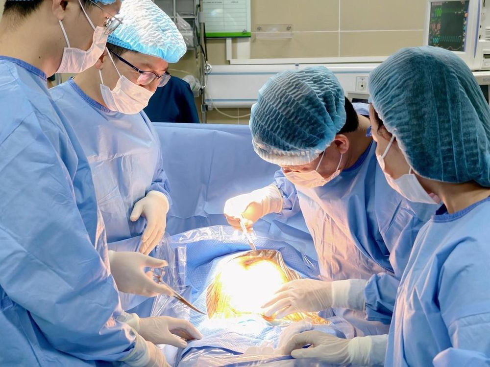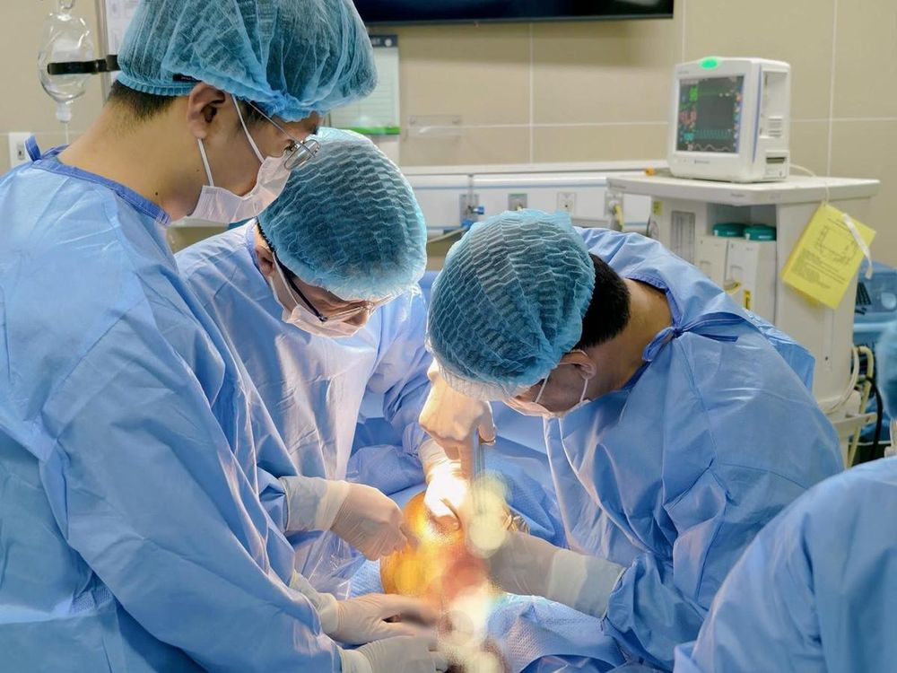 Ê-kíp hai bệnh viện phẫu thuật cho bệnh nhân (Ảnh BVCC)