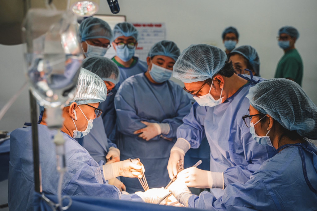 Các bác sĩ thực hiện phẫu thuật cho người bệnh (Ảnh: BVCC)