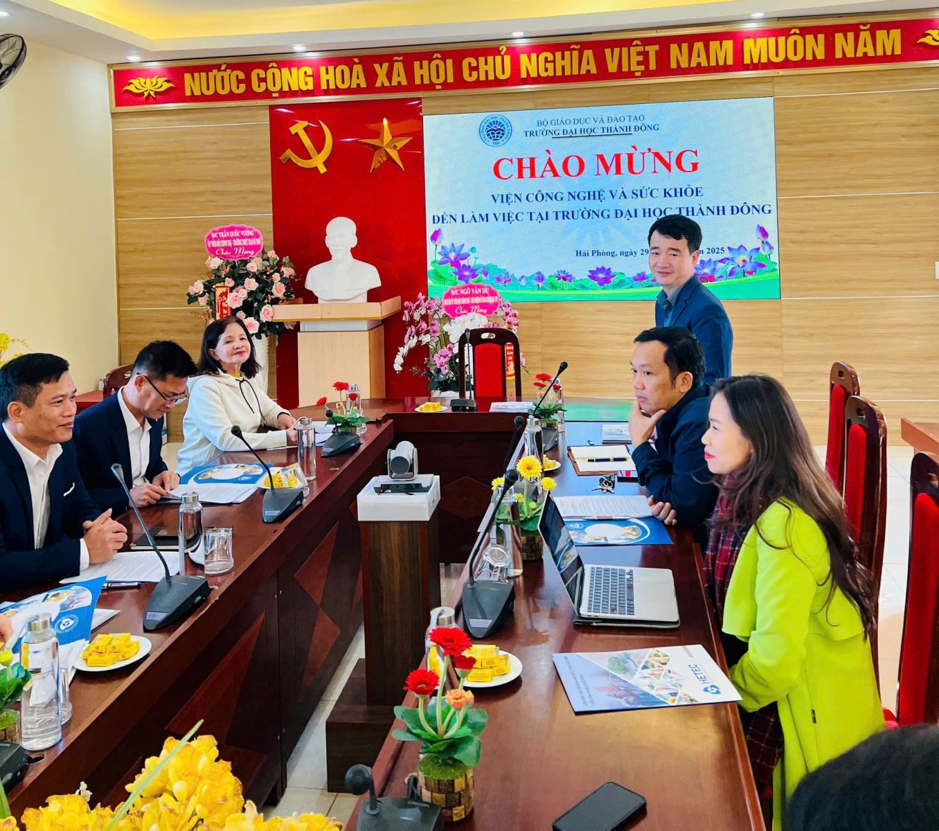 Buổi làm việc có sự tham dự của lãnh đạo hai đơn vị và đại diện các phòng, ban, khoa chuyên môn. Về phía Trường Đại học Thành Đông, tham dự cuộc họp có PGS.TS Lê Văn Hùng – Hiệu trưởng, TS. Nguyễn Thị Hoa Lý – Phó Hiệu trưởng, ThS. Nguyễn Văn Nam – Phó Hiệu trưởng, cùng lãnh đạo các đơn vị chức năng và khoa đào tạo. Về phía Viện Công nghệ và Sức khỏe có TS. Lê Hữu Thi – Viện trưởng, PGS.TS Nguyễn Tùng Linh – Phó Viện trưởng, Chủ tịch Hội đồng Khoa học, TS. Nguyễn Thị Trang – Thành viên Hội đồng Khoa học, cùng các trưởng ban chuyên môn của Viện.