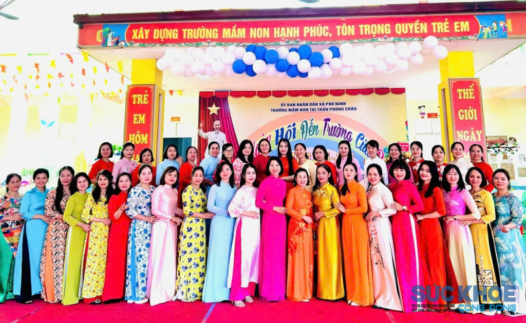 Tập thể cán bộ, giáo viên, nhân viên Trường Mầm non Phong Châu xã Phù Ninh (ảnh: TL)
