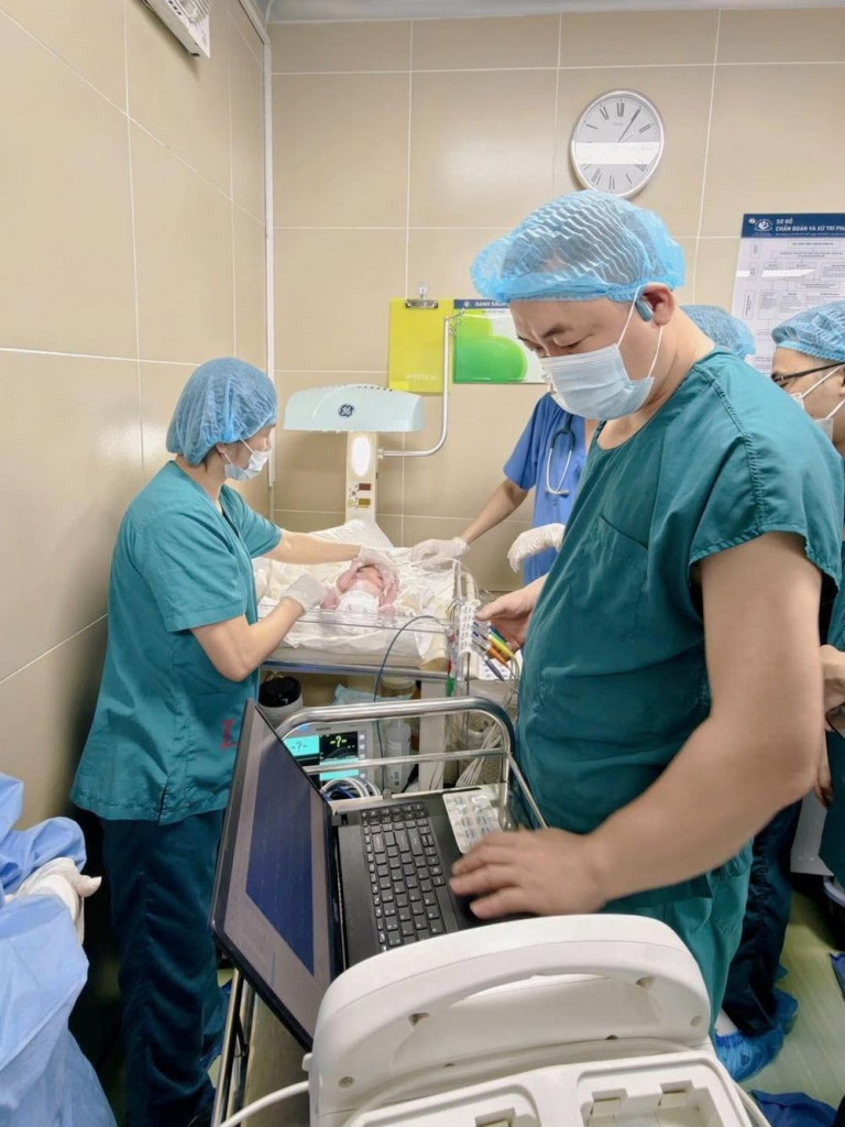 Ngay sau khi chào đời, bé được nhanh chóng đánh giá và ổn định tình trạng tim mạch ban đầu trước khi chuyển tới Bệnh viện Nhi Trung ương để tiếp tục theo dõi và điều trị chuyên sâu.