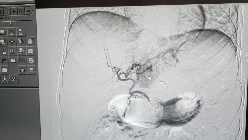 Trước tình trạng nguy kịch, thay vì lựa chọn phẫu thuật mổ phanh tiềm ẩn nhiều rủi ro, các bác sĩ đã quyết định áp dụng kỹ thuật can thiệp nội mạch - nút mạch gan, một phương pháp điều trị hiện đại, ít xâm lấn.