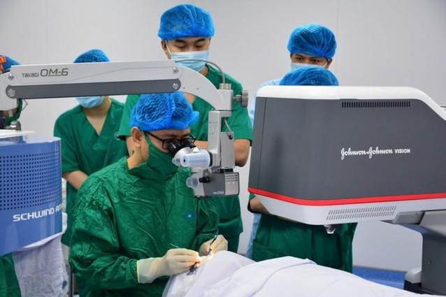 BS.CKI Trần Bá Kiền - Giám đốc chuyên môn tập đoàn y khoa VISI trực tiếp thăm khám và phẫu thuật xóa cận phương pháp SILK cho người bệnh (Ảnh: TTCC)