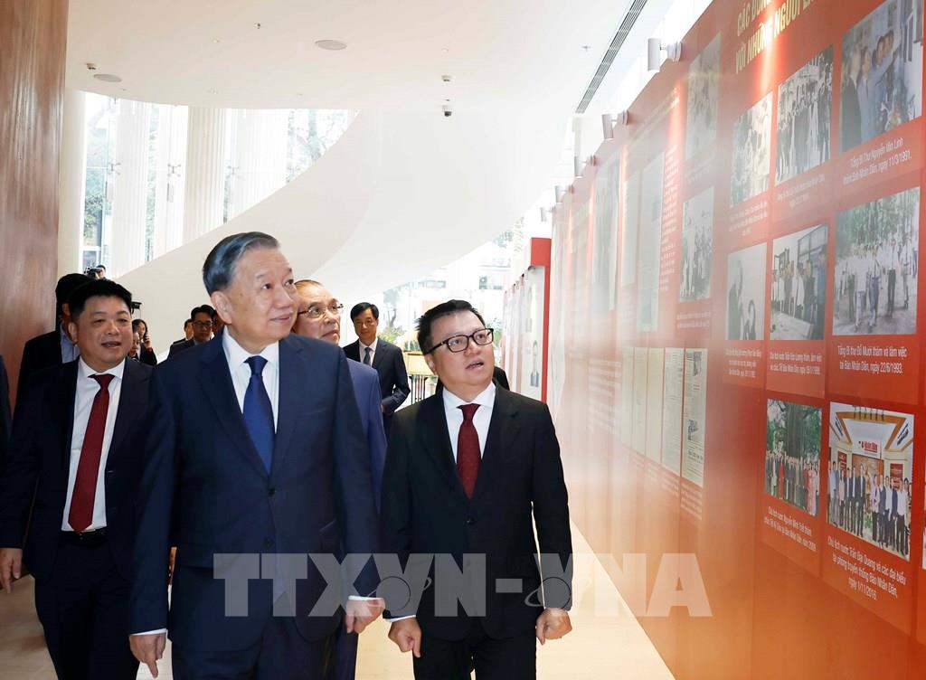 Tổng Bí thư Tô Lâm tham quan trưng bày ảnh của Báo Nhân Dân. Ảnh: Thống Nhất – TTXVN